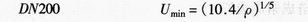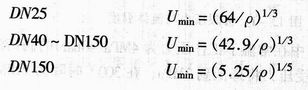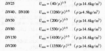 對于氣體和蒸汽,不同公稱通徑最低流速的經(jīng)驗(yàn)公式如下:
